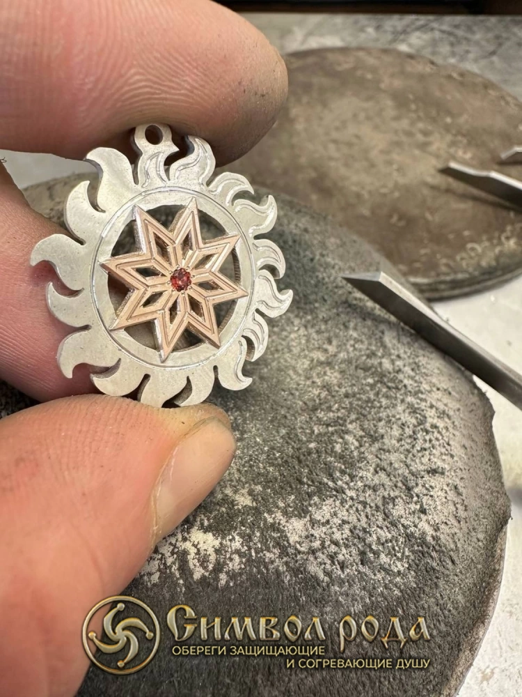 Оберег выполнен из серебра 925"+сверху сам символ из золота 585" (не напыление!)