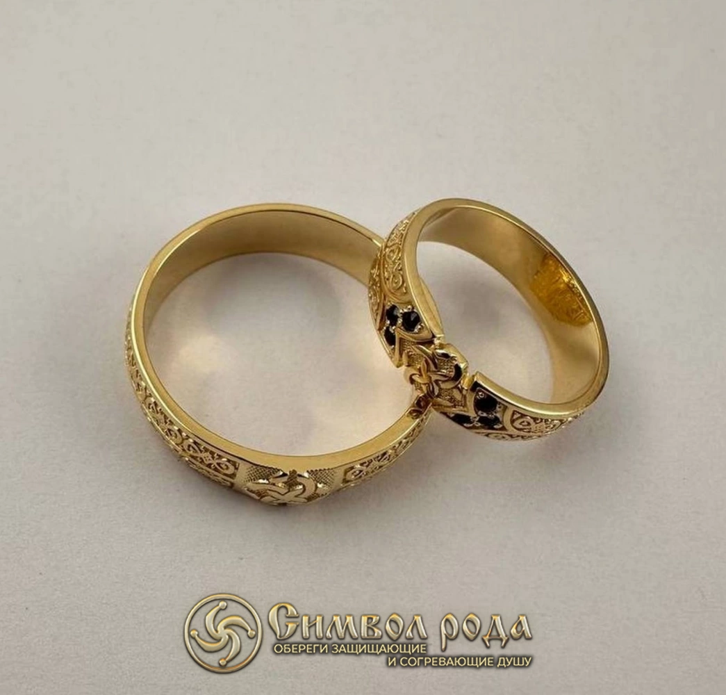 Каждое кольцо в рисунке Свадебника состоит из двух цветов. Количество синих частей колец соответствует количеству красных, а это свидетельствует об их соразмерности и равенстве значений. При этом кольцо не замкнуто, а представляет собой раскрытую систему. Такой рисунок означает, что новообразованная пара живет не обособленно, а продолжает свой род согласно воле Богов и Предков. И подтверждает этот союз наличие не двух, а четырех колец в символе – мужа, жены, Бога мужнего Рода и Богородицы Дживы. В рождении нового человека принимают участие также четыре Бога – по паре земных и небесных.